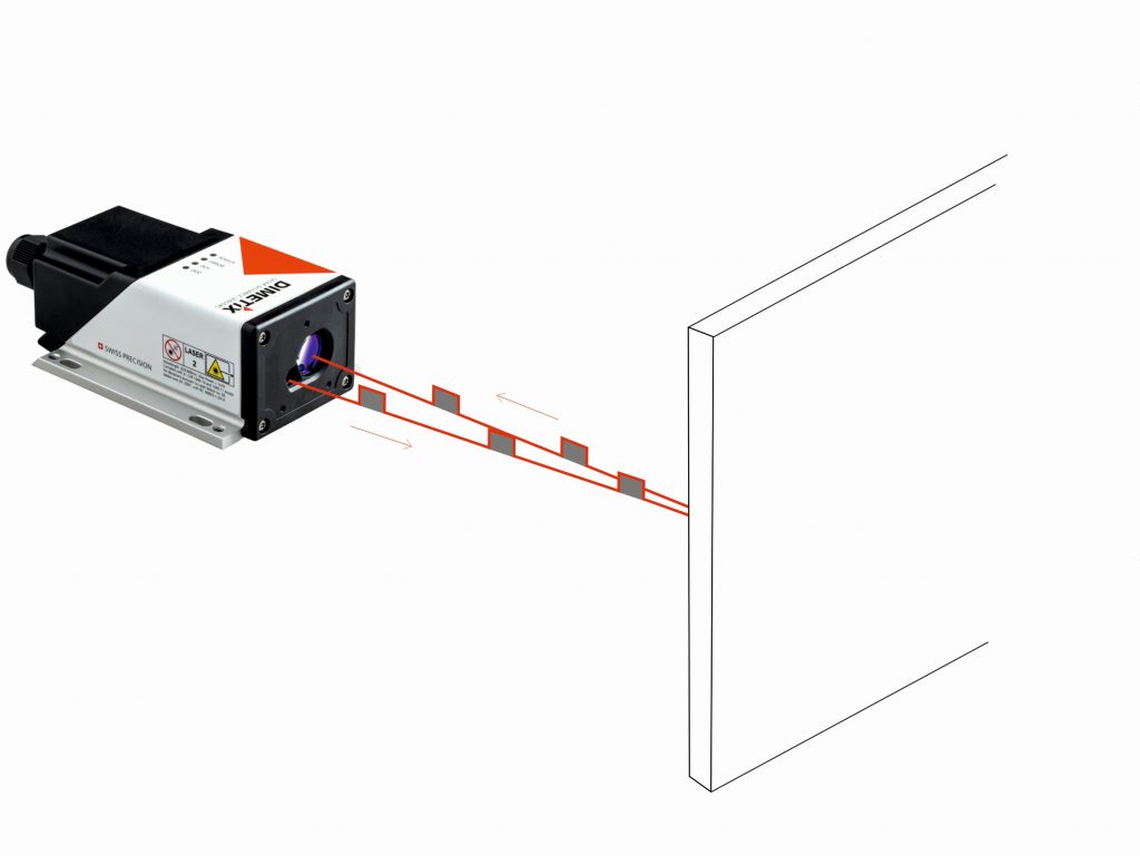 Laser distance sensors usually measure either time of flight or phase shift. With measurement of the time of flight, a short pulse of light is emitted. The pulse propagation time, i.e. the time that the light beam needs to travel from the source to a reflector and back again to the source, is then used to determine the distance. This method is fast, but often not precise enough for challenging time measurements. With distances of several hundred metres, the resolution is normally only in the centimetre range. Alternatively, the phase shift of the reflected laser beam relative to the emitted beam can be evaluated instead. The phase shift is distance‑dependent, i.e. can be used to determine the distance travelled. This measurement method is considerably more accurate, but the more complex evaluation means that it is not as fast as pure time of flight measurement.