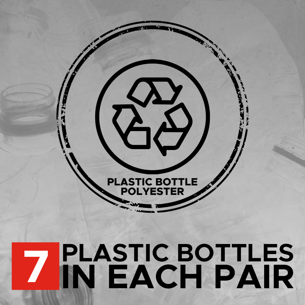 Upper Materials: Water repellent, breathable mesh and high-performance textiles, linings and lace featuring seven plastic bottles per pair, and 100% post-consumer recycled polyester.