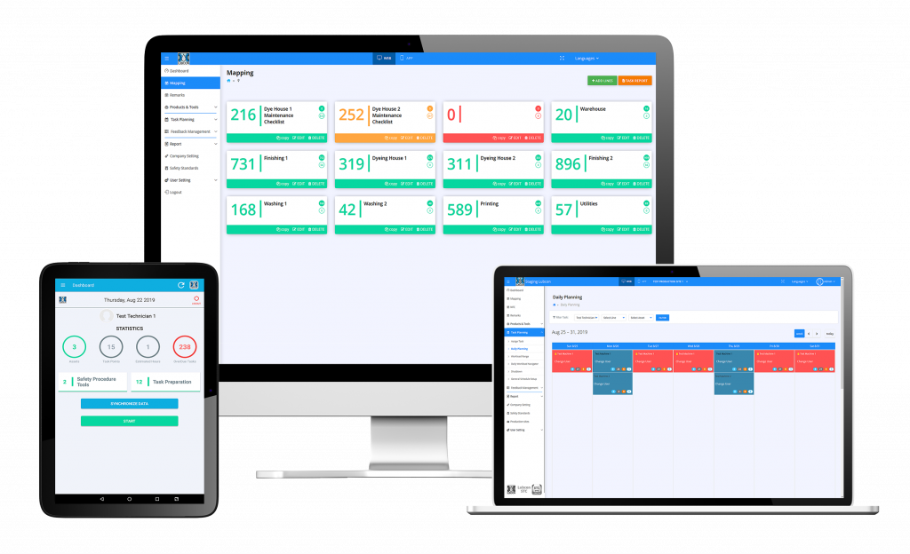 After the tasks have been processed, this is acknowledged by the operator and the system status is updated after the NFC tag is scanned again. This status can be accessed at any time by maintenance management via the dashboard integrated into the program. The digital data available at hand provides comprehensive information and options: