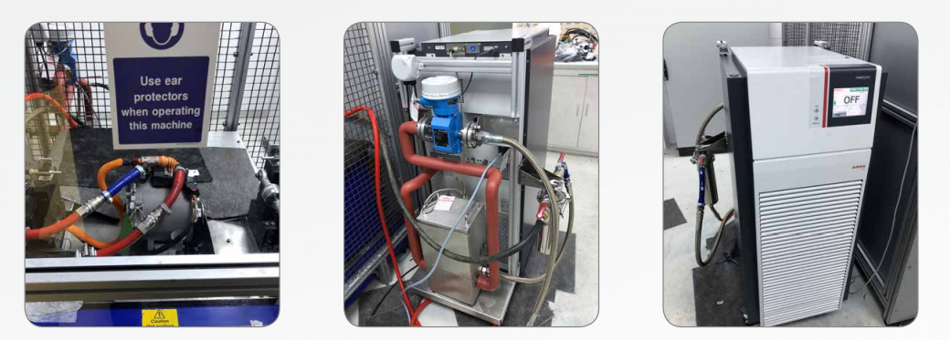 A typical testing requirement for the test bed is to hold 65 °C with the component under different load conditions. At idle the PRESTO A45 can maintain 65 °C with 30 % (1.8 kW) power in a series of steps up to a full load test, the component requires cooling at 3-4 % (0.14 kW) cooling input to remove heat generated.