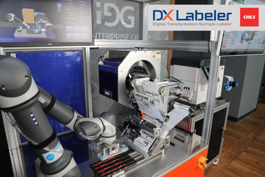 OKI’s Pro10 Series Inline Printer takes a different approach. By combining the compact OKI Pro1040 desktop label printer with the DX-Labeler stacker and robotic arm, the system is designed to bring label printing and application closer to live production, rather than leaving them as a separate downstream task.